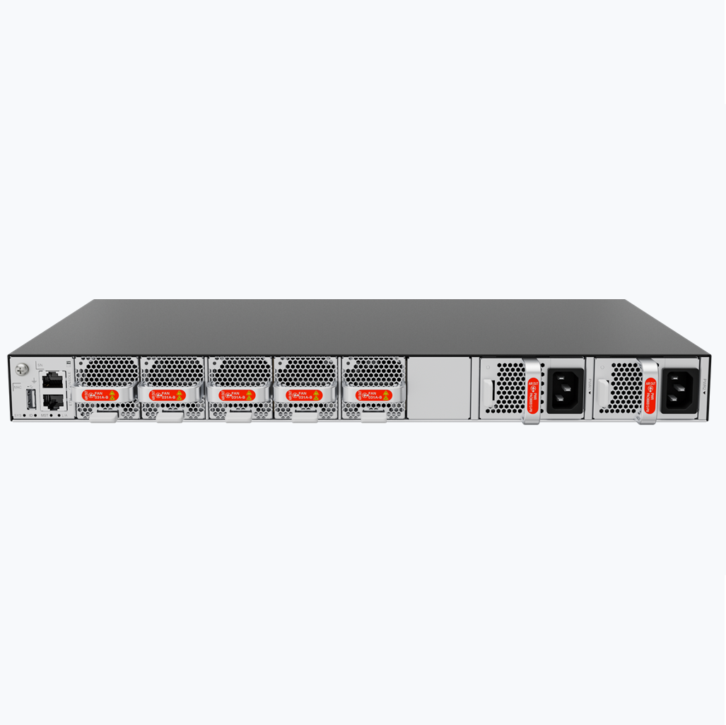 CloudMatrix 8600系列交换机包括CloudMatrix 8655-32CQ4BQ一款设备形态,可以顺利获得配置不同风向的电源和风扇来实现风向前进后出或后进前出两种模式。